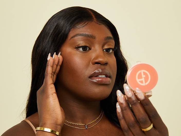 If you’re in a crunch for time, you can certainly stop here, but these next few products will give you that long-lasting glow. Add some flush to your cheeks with a sheer cream-based blush. You can further accent this with a touch ofhighlighter. As the penultimate step to this natural look, lock in your base with a featherlight powder. Laura Mercier’s setting powder is a cult favorite for a reason but ONE/SIZE by Patrick Starrr Ultimate Blurring Setting Powder has been the go-to for weeks now and hasn’t disappointed us. Lastly, seal the deal with a tinted oil or lip balm to enhance your lips.
