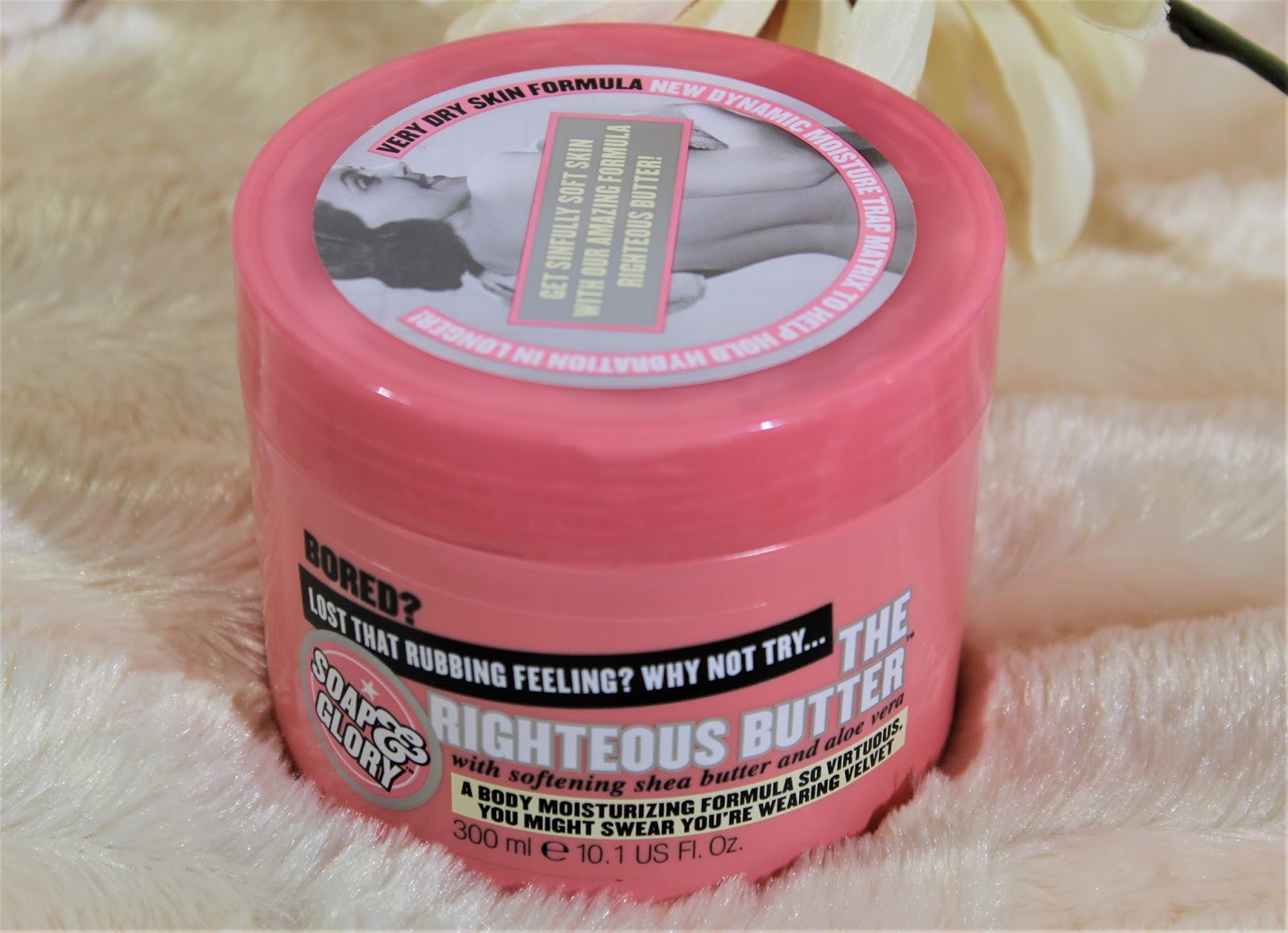 The packaging of the Soap & Glory Righteous Butter is charming, pretty & fun. As with many of their products, it’s somewhat nostalgic & PINK!